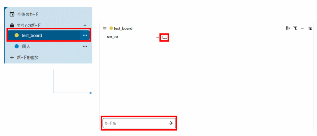 カードを追加したいボードをクリックします。