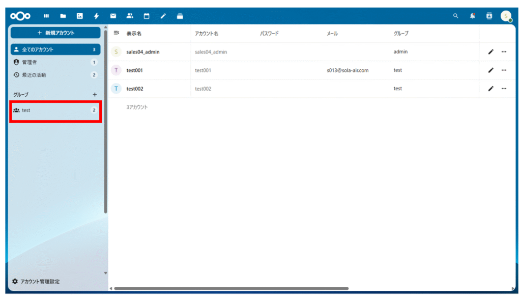 対象グループに所属するユーザー一覧が表示されます。