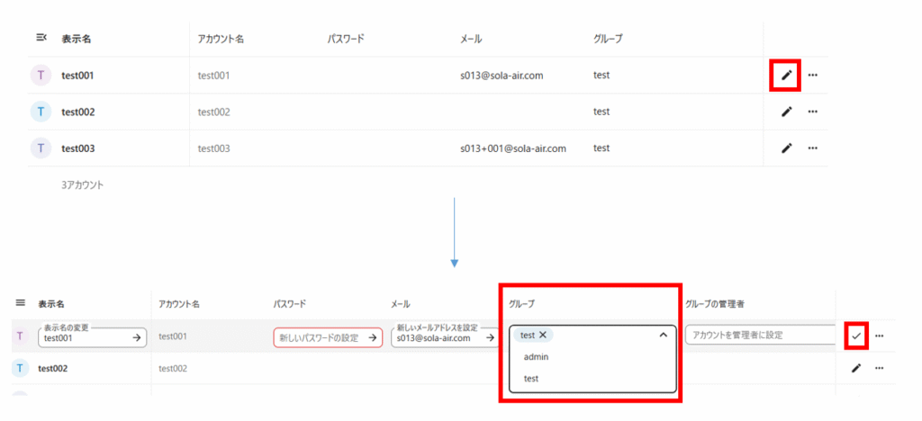 「グループ」でユーザーが所属するグループを編集できます。