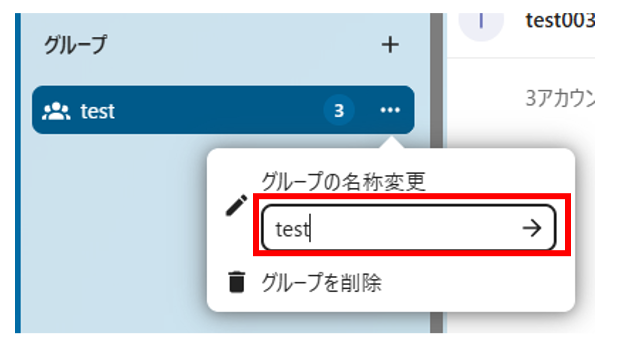 表示されたメニューの名称変更欄でグループ名を編集できます。