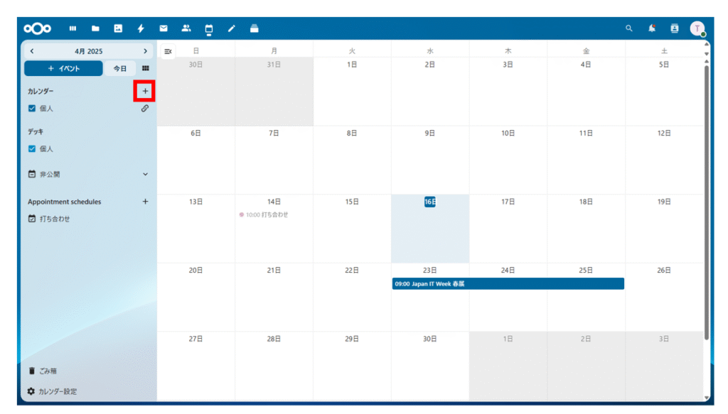 新規予定の登録時に左上で追加したカレンダーが選択できます。