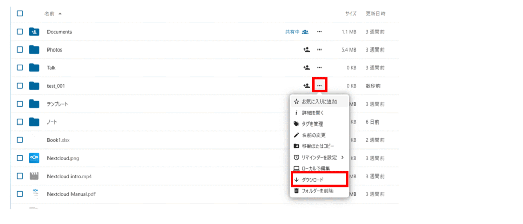 表示されたメニューの中で「ダウンロード」をクリックします。