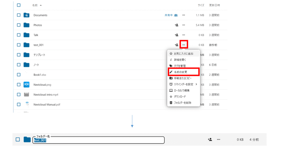フォルダ名を変更する