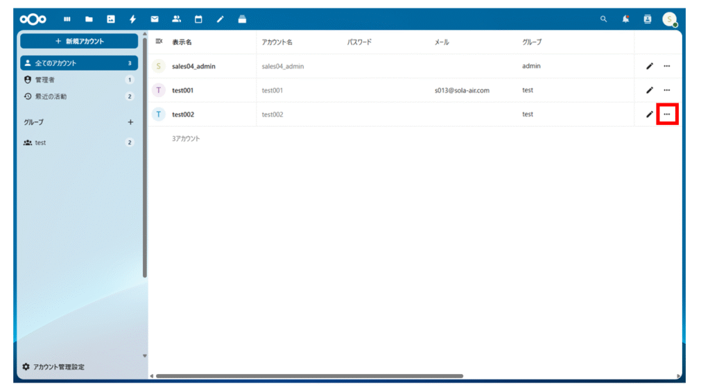 対象のユーザーの「」ボタンをクリックします。