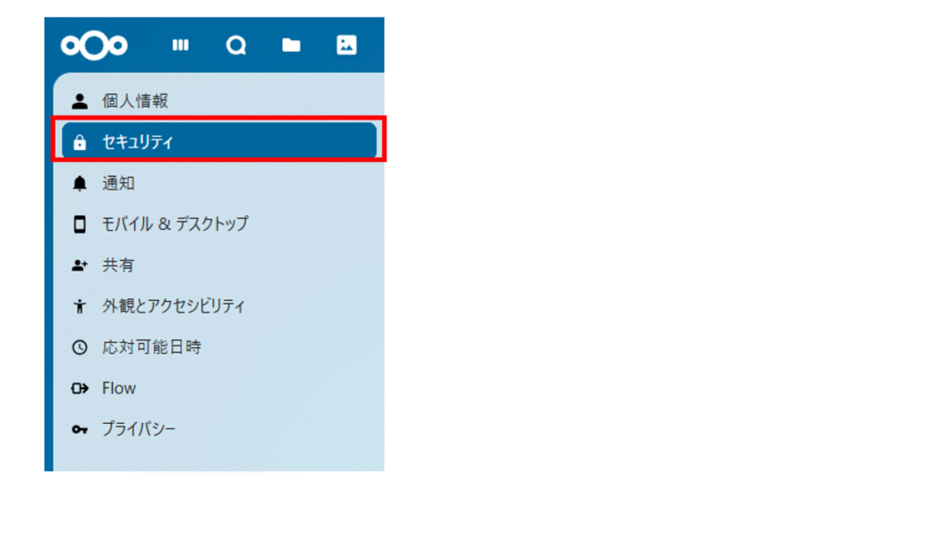 サイドバーの「セキュリティ」をクリックします。