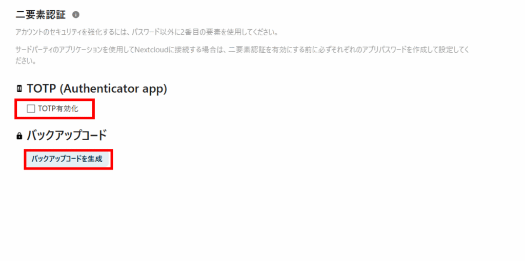 二要素認証の「TOTP有効化」にチェックします。