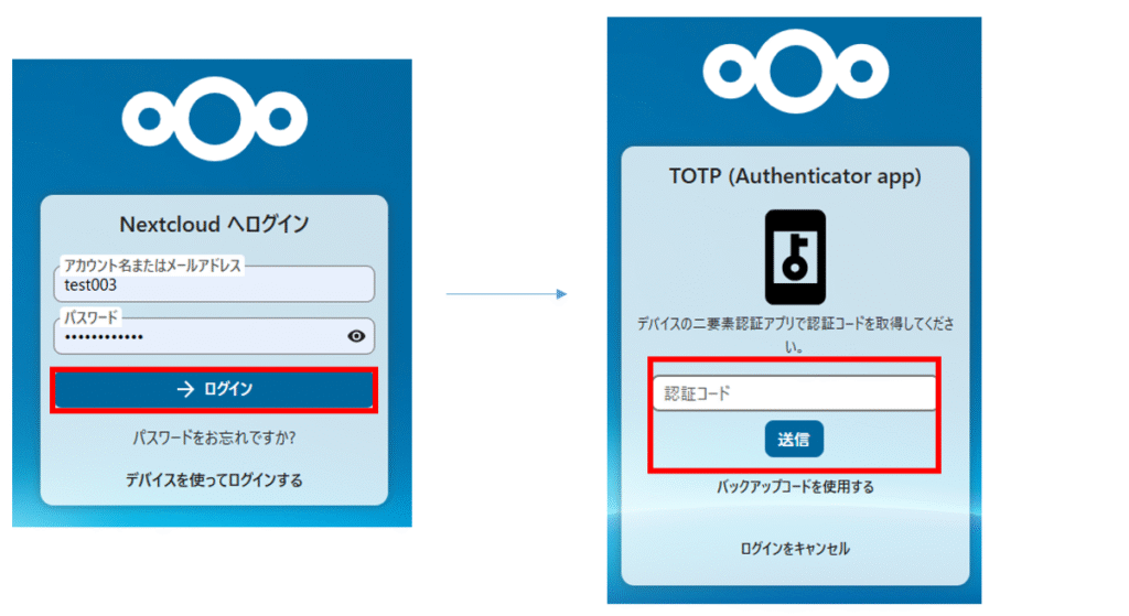 TOTPアプリ(Google Authenticator など)に表示された認証コードを入力し、ログインできます。